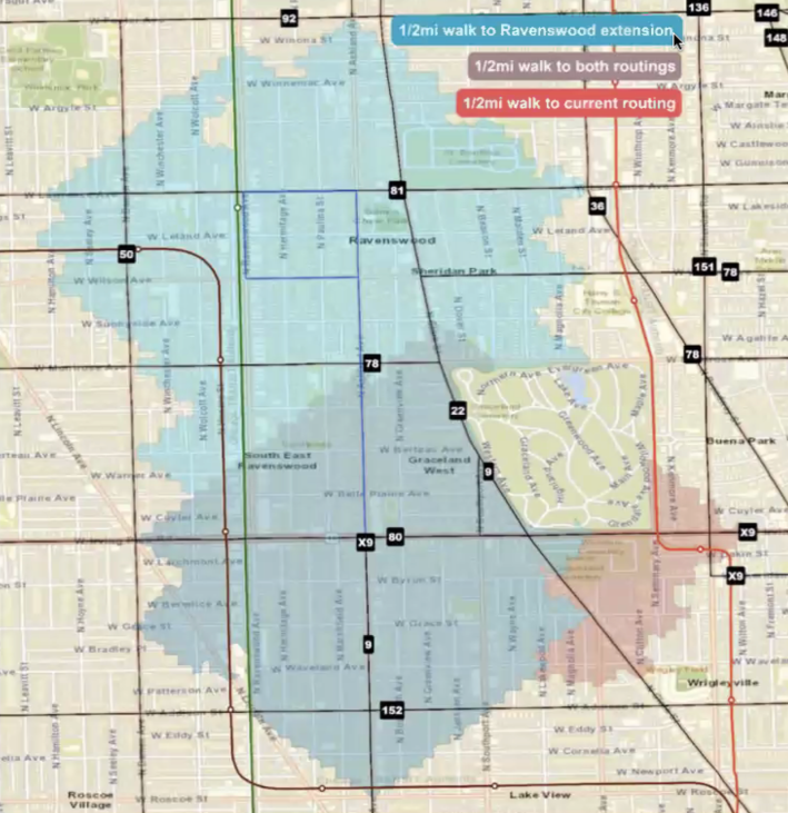 Discussing the impacts of the 9 Ashland extension, he noted that the CTA estimates that the new route will serve 21,500 more residents, 95 percent more than the north end of the current itinerary, which ends next to Graceland Cemetery. The agency also says the extension wil provide access to 15,000 more jobs than the status quo.