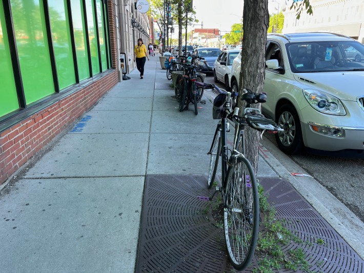 Streetsblog has previously discussed planned bike, pedestrian, and green space improvements on Ravenswood Avenue (1800 W.) on the east side of Metra’s Union Pacific Northwest tracks, in the 40th and 47th wards. Murphy noted that in the 40th, Ravenswood Avenue Arterial Resurfacing, between Peterson (6000 N.) and Ainslie (4900 N.) avenues, will include curb extensions and bike-friendly speed bumps, plus on-street bike parking “corrals”. This will also happen later this year.