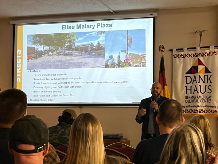 The event took place in the building’s Brauhaus Room, which includes much of the decor salvaged from Lincoln Square’s Chicago Brauhaus restaurant and bar, which closed in 2017. And the Horner Park Jazz Band played swing tunes and more after the presentation. But, judging from the many bicycles locked outside the DANK Haus, it was clear that one of the main attractions was a discussion of the numerous upcoming sustainable initiatives in the district, represented by Ald. Andre Vasquez.