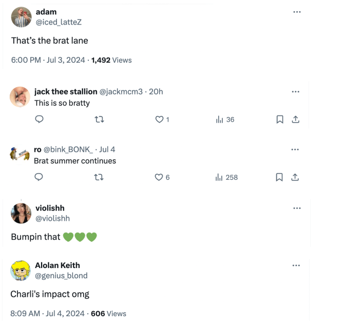 Fortunately, local cycling advocate Alex Cannon politely responded to my tweet by indicating that Koslofsky almost certainly wasn’t dissing bicyclists. Rather “brat lane” was a funny reference to the new bikeway being pretty much the same shade of green as the cover of Charli XCX’s new album Brat, released last month.