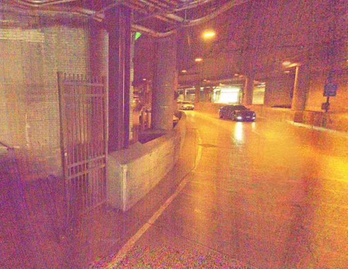 The South Side of this section of Lower Wacker, where the victim was walking, is lined with loading docks. Google Street View shows that at this location, if you’re walking on the south side of the road, you must pass through a lockable gate to avoid walking in the street. If the gate shown above was locked at the time, that may explain why the pedestrian was walking in the street.