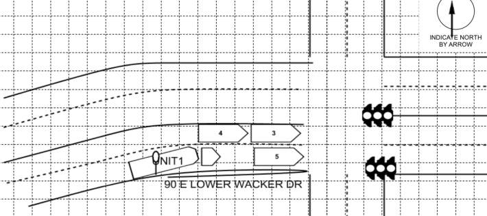The crash report provides more information about what reportedly happened. It shows the collision as taking place on the southwest corner of Lower Wacker and Lower Michigan. The pedestrian’s name, age, and address are not provided, and he is listed as “John Doe,” which indicates he had no ID on him. An Indiana license plate number is listed for the truck, but no model or company name is provided.