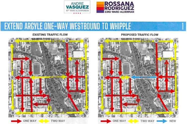 CDOT, alders Rodriguez and Vasquez propose making Argyle at North Shore Channel Trail one-way WB