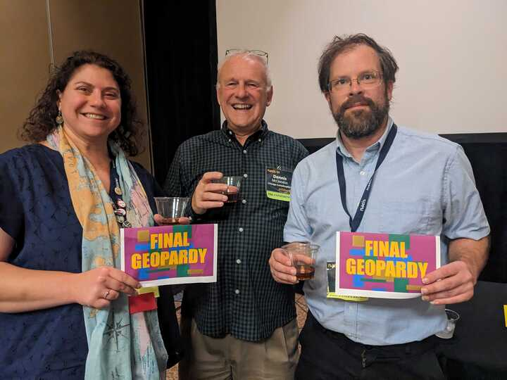 “[Dennis] must have been a big fan, as he ‘channeled’ Art Fleming [a former Jeopardy host] and was just masterful at it,” said Susan Peschel, a business manager for NACIS and former visual resources librarian at University of Wisconsin-Milwaukee, who met Dennis in 1985. “He tailored each game annually to the city we met in. All of the questions were very challenging but people loved it. It had to have taken quite a long time to put it together, but it was clearly a labor of love for him and an absolute hit at our annual conferences. I can’t imagine anyone coming close to filling those shoes.”