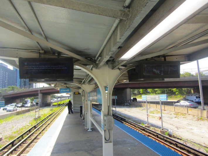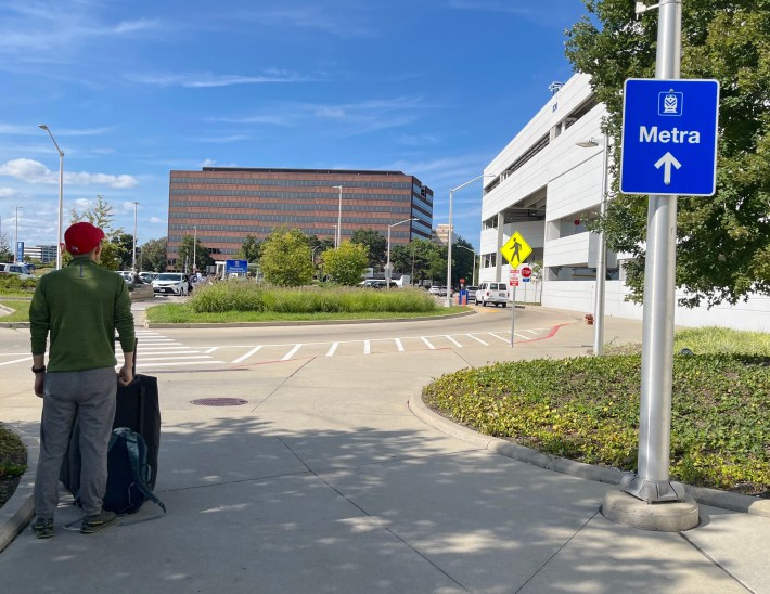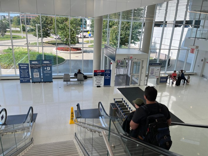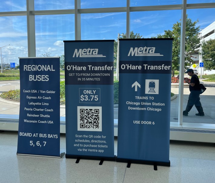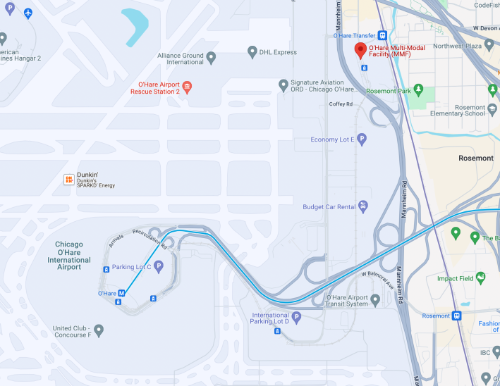 But to use the O’Hare shuttle, you need to ride O’Hare’s Airport Transit System people mover from your flight terminal to the Multi-Modal Facility (it’s mostly a rental car center, but it’s also served by Pace and various intercity buses). And then you have walk a couple more blocks to Metra’s O’Hare Transfer station to catch your train.