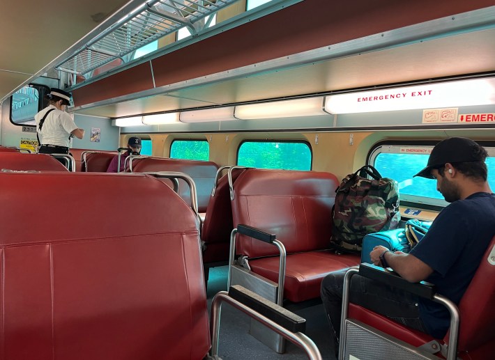 So it seemed to John that the main selling point of the O’Hare shuttle is that, thanks to onboard Metra conductors, NCS runs are generally safer, cleaner, and less chaotic than the average, largely unsupervised, Blue train. That means you’re less likely to encounter annoyances or dangers, including littering, smoking, or worse – more on the latter in a bit. Another perk of Metra is that the padded seats are more comfortable that the CTA’s hard, plastic benches.