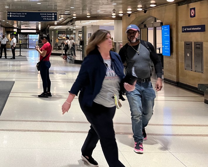 Since neither of us had clearance to enter the United Center’s security perimeter, we picked the nearby outpost of the legendary Billy Goat Tavern, 1535 W. Madison St., as the finish line. It’s a couple blocks east of the DNC security perimeter, and it would level the playing field a bit, because Madison is only two blocks north of Union Station.