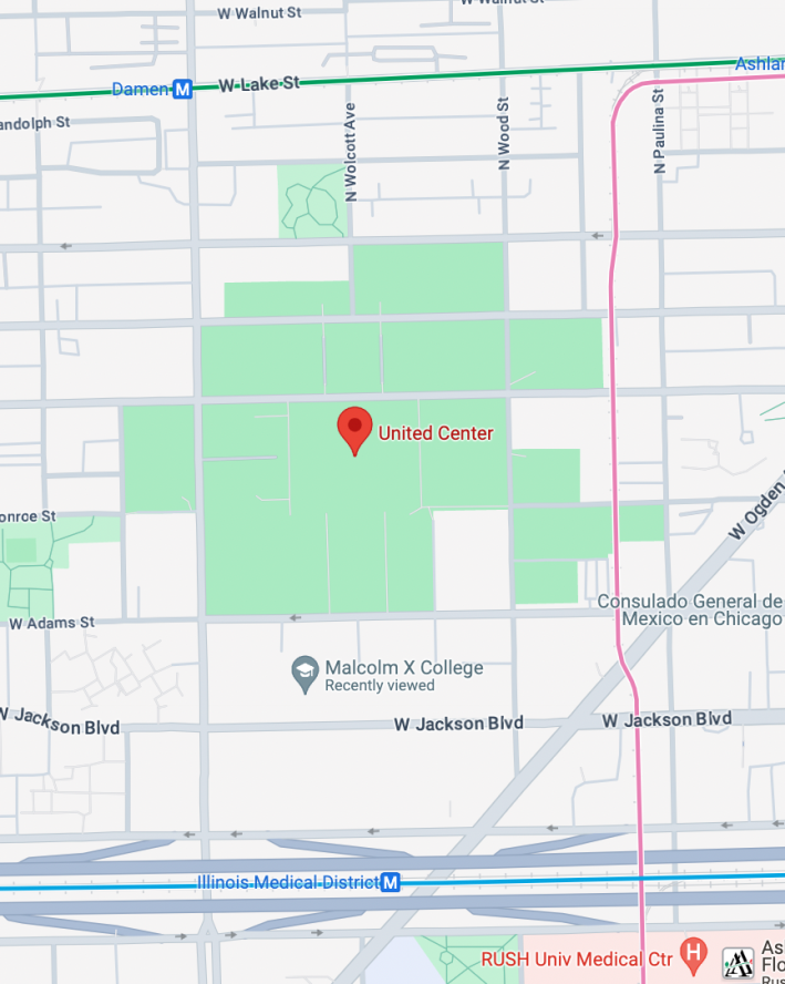 In contrast, from most O’Hare plane terminals, you can simply walk to the local Blue Line station. And if you want to go directly to the United Center, you can just ride the ‘L’ to the Illinois Medical District station and walk 0.6 miles to the conference. Or you can transfer to the Green Line at the Loop Clark/Lake station and then ride to the new Damen Green stop, which is a shorter, more pleasant walk of 0.3 miles to the stadium.