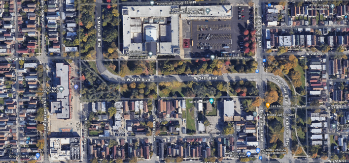 CDOT also put in a mid-block raised crosswalk in front of Saucedo Academy, 2850 W. 24th Blvd.