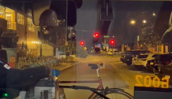 The #9 showed up at 4:14 a.m., right on time to fulfill its scheduled arrival time. Take a virtual ride in the video below.