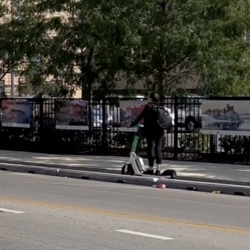As he originally proposed, Manaseer got to choose the date and time, Monday, September 9, between roughly 3:30 and 4:30 p.m. The weather was about 80 F and sunny, nice weather for cycling and scooting.