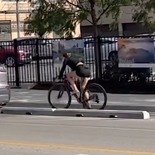 But I’d like to take the high road here by acknowledging that sustainable transportation device users who aren’t riding in the protected bike lanes, or riding in them legally, don’t really help the argument that PBLs are worthwhile. So let’s not count the hoverboard user I saw in a mixed-traffic lane, or two bike riders I saw riding the wrong-way in a bike lane, and pedaling on the sidewalk.