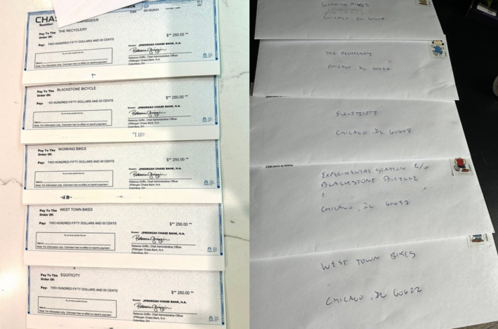 After a longtime Chicago bike advocate recommended four local nonprofits with currently active bicycle education programs for Manaseer to contribute to, I learned that a fifth one is currently operating a bike ed program. So I suggested that Manaseer add it to his list of $250 donations for extra credit, which he generously did. So I think we can now consider this wager, over whether or not at least 3 percent of vehicle operators on 9/9/24 between 3:30 and 4:30 p.m. on Augusta would be using sustainable transportation devices, to be productively resolved.