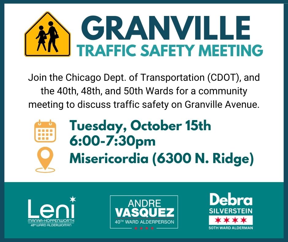 But let’s look at what ideas are actually being floated for Granville, according to City officials. “[The Chicago Department of Transportation] has been working closely with the 48th, 40th, and 50th wards, along with other community stakeholders, on a plan to enhance traffic safety along the Granville corridor,” said CDOT spokesperson Erica Schroeder. “A public community meeting will be held on October 15 to discuss the proposed improvements.” Here’s a flier for the hearing.