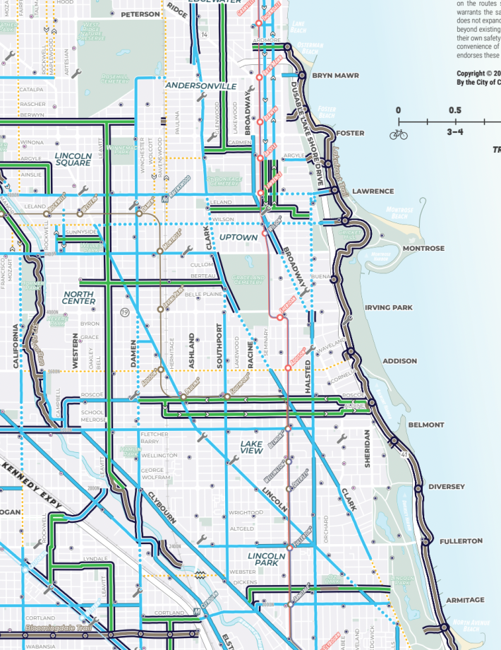 An example of this is, I live in Lincoln Square, and we have a greenway that goes through the neighborhood called the Leavitt Greenway. It currently terminates at one intersection at a [cul de sac, at Montrose and Lincoln avenues], and then continues after that intersection.