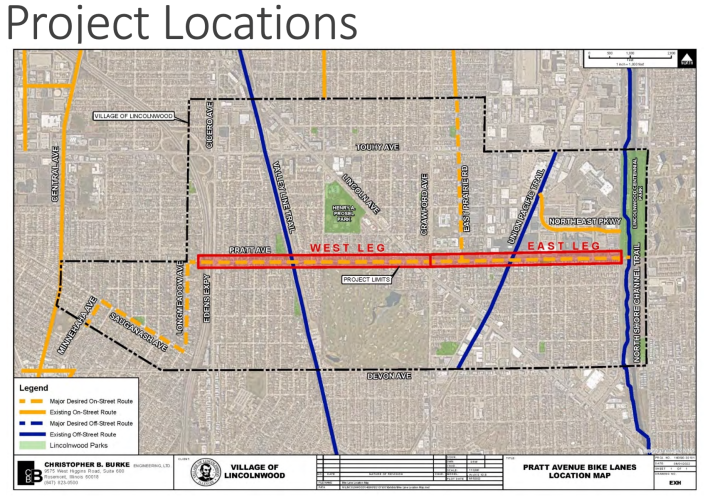 Update 10/21/24, 1:30 PM: Lincolnwood Public Works Department Staff Engineer Rachel Mieritz suggested including the following update. “The [Pratt] bicycle lanes are the first step to adding east-west travel in Lincolnwood,” she said. “The bicycle lanes will connect to the Pratt Avenue Pedestrian Bridge over the North Shore Channel. The Pratt Avenue Pedestrian Bridge project is still in design but is projected to be built in the next few years.”