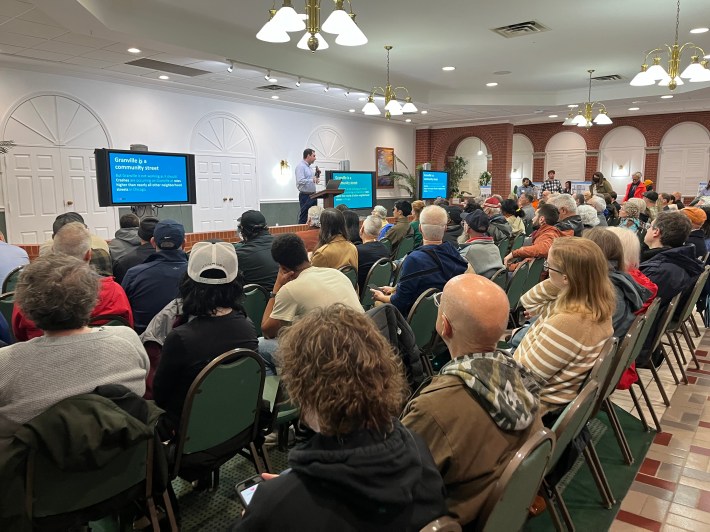 • News-Star: “The majority of the crowd was far from happy.” As I wrote previously, that wasn’t my impression at all: “My sense was that at least around half, possibly a majority, of attendees liked what they heard, especially the parents of school kids on Granville who are endangered by the status quo of heavy crosstown car traffic and speeding.” Rather, it seemed like all the attendees who broke the previously-stated rules of the hearing, by calling out questions or refutations during CDOT’s presentation, were skeptical of or opposed to the proposal. But the naysayers weren’t necessarily “the majority.”