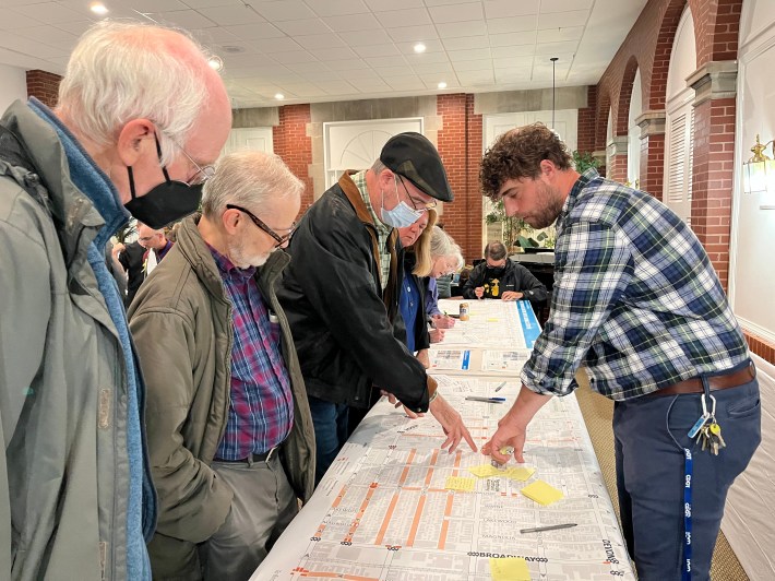 • News-Star: “CDOT Complete Streets Director David Smith even shouted across the room to scold those who dared to speak up, ask questions, or challenged CDOT data or statements.” It’s true that Smith did eventually seem annoyed by the many interruptions, so maybe “scold” is accurate. But that was understandable, because he’d already explained a couple of times that there was only an hour and a half to work with at the venue, and questions would be taken during the open house, but the detractors ignored him. However, it seemed like the open house format worked fine for Q & A, because by closing time, the room had already pretty much cleared out. Presumably everyone who wanted answers to questions, or to provide constructive feedback – as opposed to grandstanding in front of a crowd – had a chance to do so.