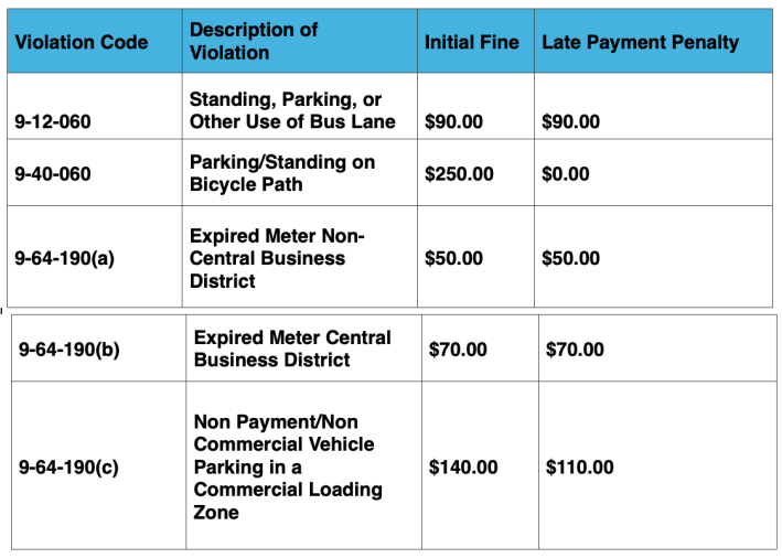 A: “The cost of the tickets would be the same as currently outlined in the municipal code.” See below.