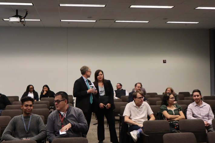 Commenter Dianne Kampinen was the only attendee who spoke in favor of increasing security. “Everybody is talking about the ambassador thing or whatever, that to me is too gentle,” she said. “The people who do [things like smoking on the train or jumping turnstiles], they’re very brazen.”