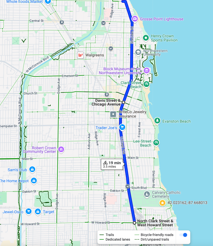 As recently discussed here, the City of Evanston has proposed extending the suburb’s existing two-way protected bike lane on Sheridan Road and Chicago Avenue. It would go 1.9 more miles south from its current southern terminus at Davis Street to Howard Street. That would create a low-stress, north-south bikeway that would run 3.5 miles, all the way between Evanston’s border with Chicago to its boundary with Wilmette, the adjacent North Shore ‘burb. Sounds great, right?