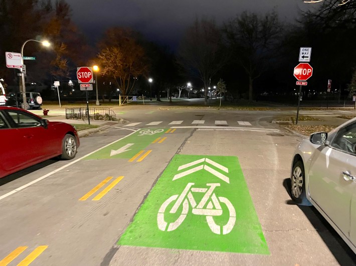 Below is a relatively concise roundup of what I saw on Tuesday. I took all the photos and shot the video. If there’s no image but just a quick description of a new bikeway in bold that’s linked, just click on that text, and you’ll be taken to our previous article that talks about the project.