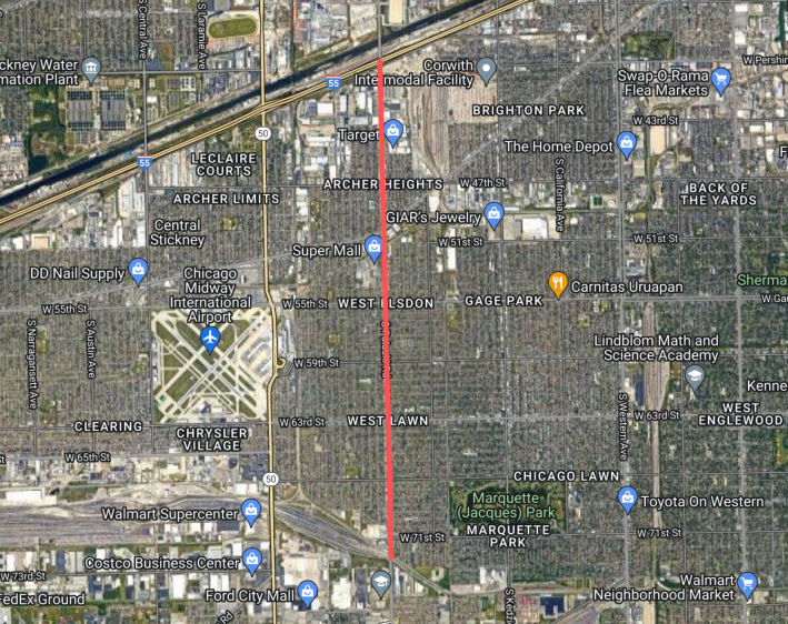 In the wake of these tragedies, the Southwest Collective has been working on strategies to prevent more serious injuries and deaths on Pulaski. “We decided that the of goal of making Pulaski safer was something that required input from neighbors,” said SWC Transit Advocacy Steward Dixon Galvez-Searle. “And so we wanted to, as best we could, document what people were experiencing who lived near Pulaski. So, we did an online survey and collected responses that way. And we also did a series of in-person walks along Pulaski for the stretch from 40th Street at the I-55 bridge to 71st Street at the Belt Railway bridge to document all of that.”