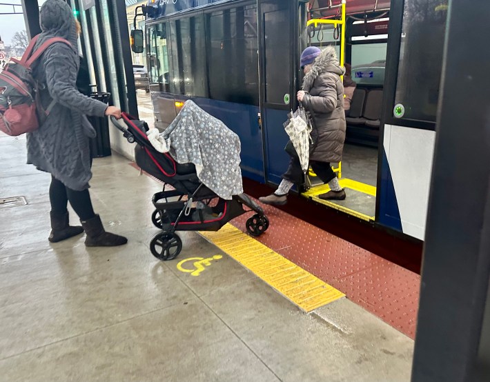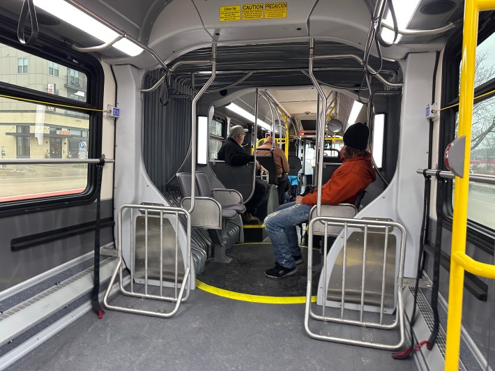 After boarding, passengers pay for the ride by tapping a new Metro Transit smart card that works like Ventra, or by showing a QR code obtained through the agency’s new app. There are five readers on the buses — one at each door to facilitate all-door boarding. Being able to alight via any door is part of the BRT standard, which was created and stays updated by the Institute for Transportation Development Policy (ITDP). This is one reason why Chicago’s Loop Link was unable to achieve the BRT standard.