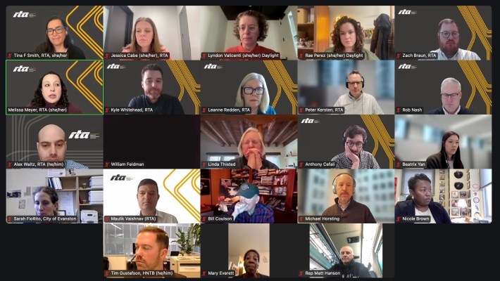 RTA Government Affairs Principal Kyle Whitehead, previously with the Active Transportation Alliance, moderated a Q&A during the meeting. One of the questions submitted by the attendees was a request for more info about the RTA’s plan to make the Chicagoland transit network more cohesive.
