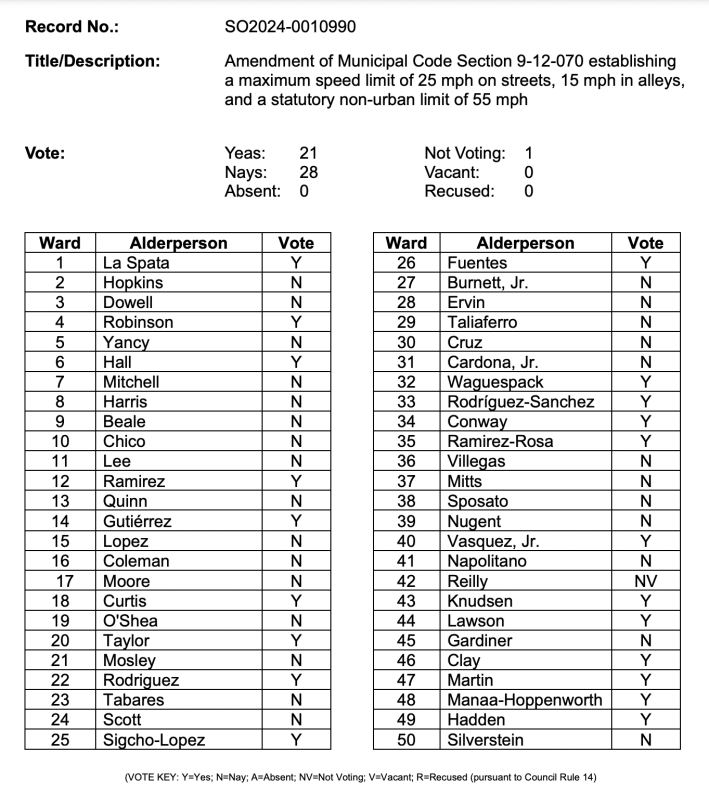 Update 2/25/25, 9:45 AM: Here’s the final City Clerk tally of who voted for/against a 25 mph speed limit. I’ve updated our map accordingly. Previously unknown: