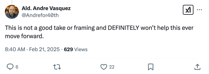 Update 2/21/25, 1:30 PM: After I publicized this article today, Ald. Andre Vasquez (40th), one of the ordinance’s most vocal proponents, and generally an important advocate for safer streets, made it clear he wasn’t happy with the angle I took.