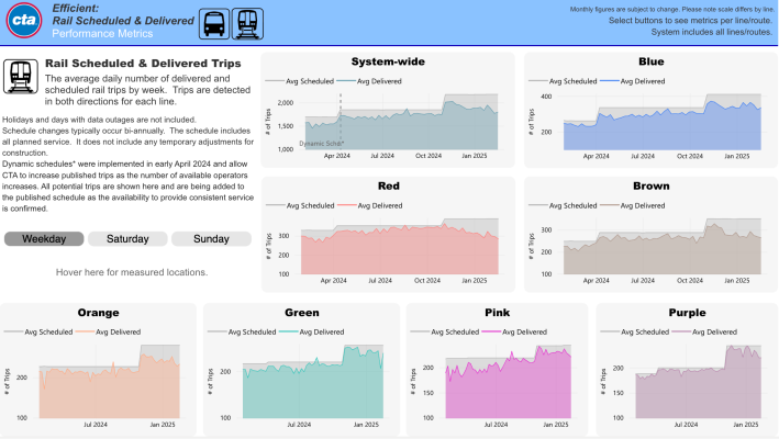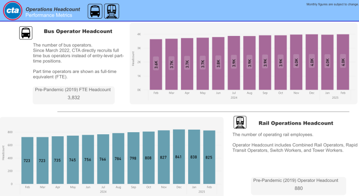 Göttlicher pointed to CTA’s performance metrics dashboard. “On pages 4 and 16 you can see RTO headcount and percent of service delivered has been once again trending downward in the last two to three months. Once again, CTA is trying to get some good press by increasing schedules on paper, while the reality is starkly different.”