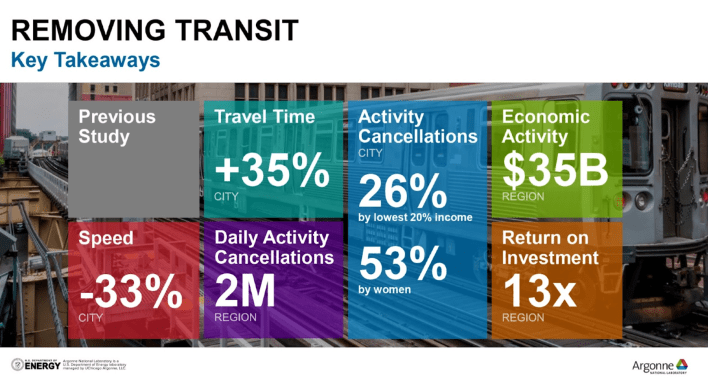 Even for those not using transit, the increased cost of commuting will add up. Argonne National Laboratory studied the value of transit to the region, and found that funding transit has a 13 times return on investment. A $771 million cut could equate to a roughly $10 billion annual loss in economic productivity for the Chicagoland region.