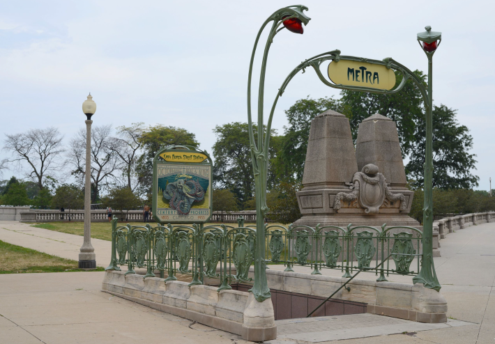 • Van Buren Street Station (train icon): This stop serves Metra Electric District trains to the south suburbs and South Shore Line trains to northwest Indiana. The latter route includes stops at the lovely Indiana Dunes. Last we checked, this station featured a vintage Parisian Metro-style entrance on Michigan Avenue, but unfortunately it was recently scheduled for removal as part of a station rehab project.