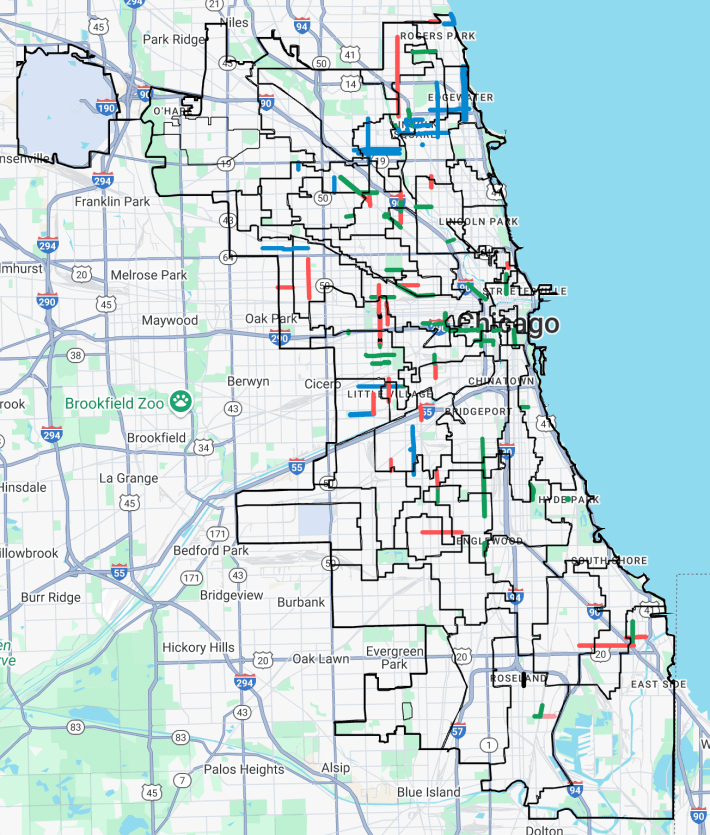 That’s one of the issues we have in Chicago. We don’t have the world’s greatest bicycle network or dedicated bus lane network, because each street passes through several wards, and you have to have all the alders onboard with a policy, or else it won’t get approved. For example, if you want to do a long bike lane, it helps a lot if the ward is pretty long. We have what’s called gerrymandering here. The city is divided up into lots of jigsaw puzzle pieces, and that was done to make sure everybody gets fair representation the City Council. The problem is, you have a lot of weird decisions to make about about where a straight line can go.