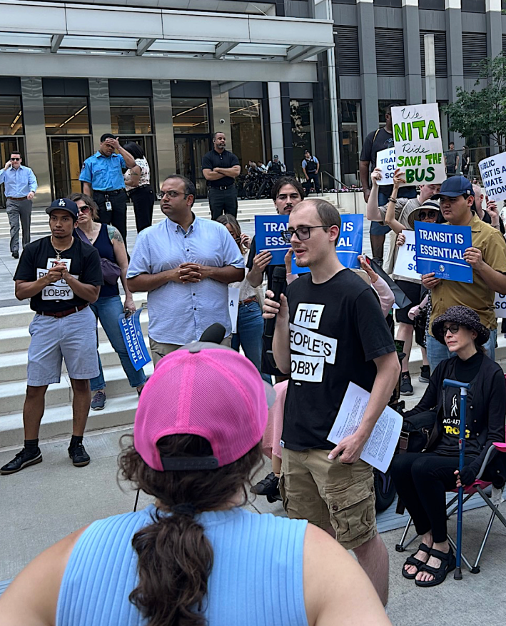 Rojas spoke about the impact 3,000 layoffs would have on the lives of transit workers. “Pink slips for those cuts begin to go out in September,” he said. “These are the same workers considered essential during the COVID pandemic, who provided transportation to other essential workers. We are calling on our elected officials to do the right thing.”