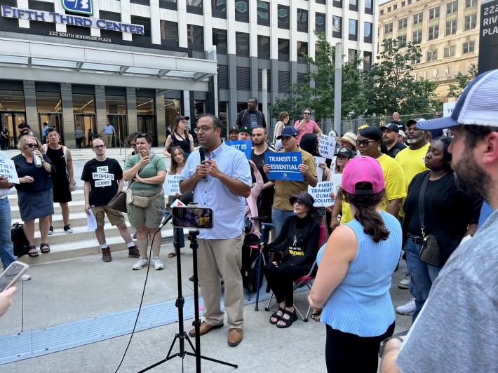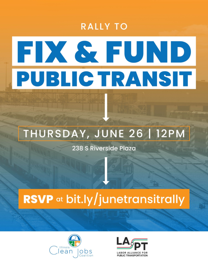 Today at Union Station, a coalition of transit, labor and environmental advocates held a rally to “Fix and Fund Public Transit,” demanding that Illinois lawmakers reconvene and provide full funding for public transportation. Speakers called for a special summer session to pass a bill that would rescue Chicagoland transit from some 40 percent service cuts and 3,000 layoffs.