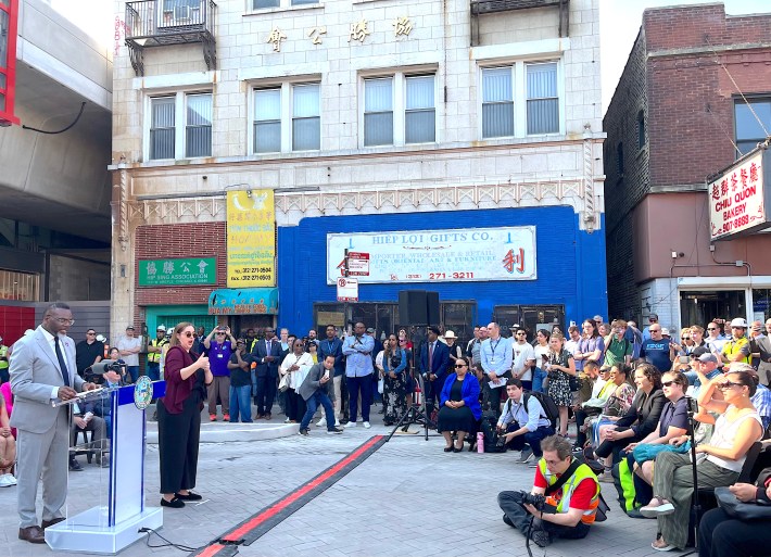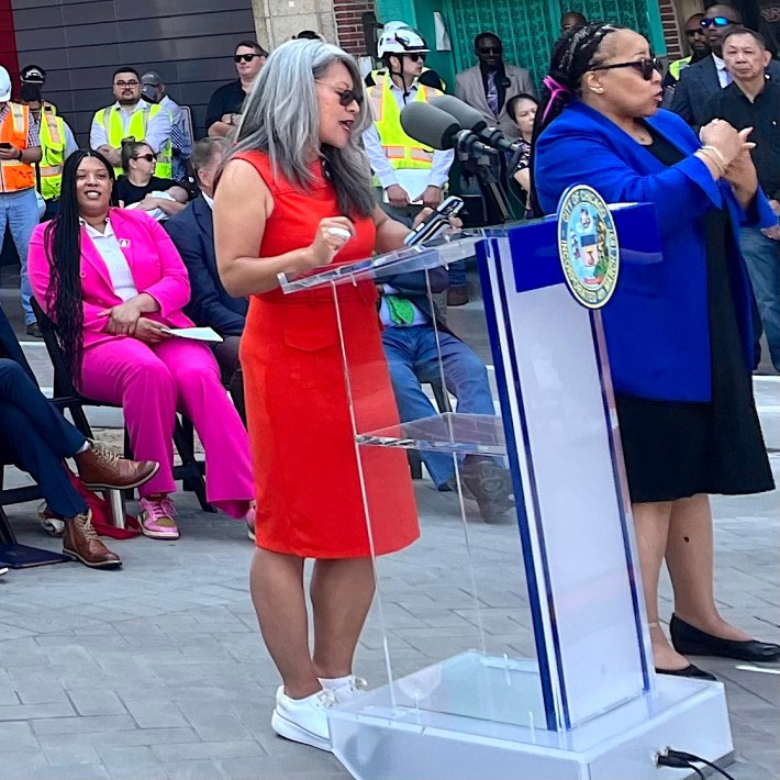 Mayor Brandon Johnson: “I want to thank you all, as neighbors, for your continuous advocacy. Our work is not done. We need a transportation system that is fully funded. [Applause and cheers from attendees.] This is truly the manifestation of investment. Investing in our people is a worthwhile investment. And so [thanks to] all of you as neighbors who continue to come together, to work with the General Assembly to ensure that we have a fully funded system, so that we can be a true model for the rest of the world.”