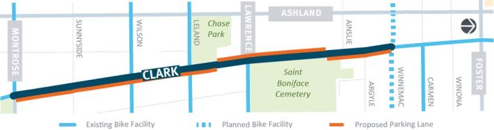 Uptown, girl! Installation of the Uptown Extension protected bike lanes on Clark from Montrose to Winnemac is slated to start today