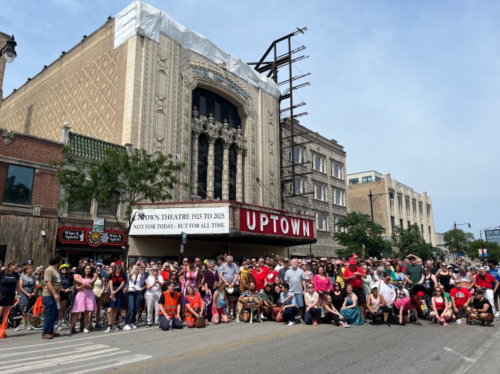 Last Saturday, the day I ran the rebuttal, I went to the Uptown Theater community portrait event, marking the 100th anniversary of the vacant entertainment venue. The block of Broadway north of Lawrence Avenue was briefly pedestrianized for the the photo shoot. Uptown is the neighborhood the new Clark PBLs were proposed in, so I’ve nicknamed that project the Uptown Extension.