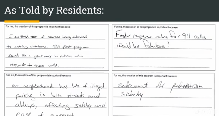 “There are a number of cities that have implemented this approach with great success,” Peterik added. “There’s already a proven track record of offloading the parking violation call response from police to other groups, and they provide a road map on how to do it successfully.”