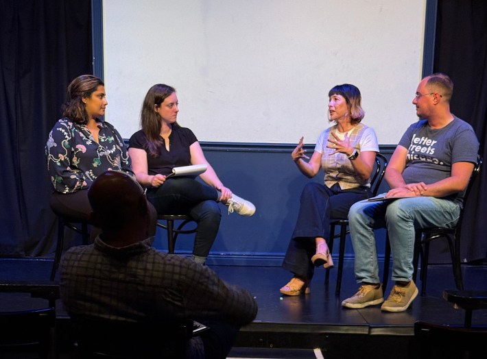 “Save Chicago Transit” was created, written, and directed by Streetsblog contributor Ellen Steinke, and co-directed by Megan Mikaelian with additional material by Zach Masso. The cast includes Steinke, Mikaelian, Masso, Hayley Cox, Satvika Ananth, Joe Boersma, and Devin Sugerik. The stage manager Maroline Johnson and the musical director is Matthew Pollack