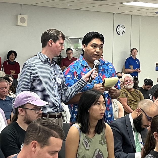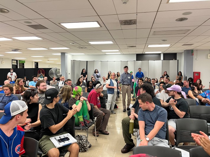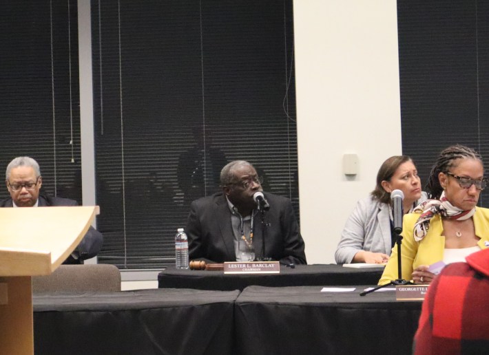Last night, the train wheels were greased by the witty and sympathetic staffer who served as emcee, and helped make commenters feel heard, as well as frequent applause and cheers from attendees. That’s not to say that the many civilian commenters who spoke were shy about pointing out room for improvement in the transit system, but the criticisms were generally constructive.
