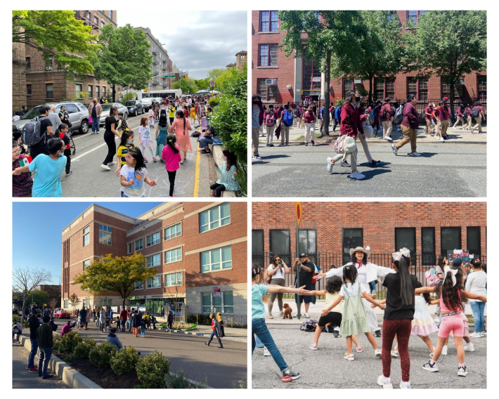 Lastly, there is another engineering measure that has found success around Europe and in New York and other major American cities: a school street. Almost free to implement, temporary blockades like sawhorses block off the street in front of a school during the morning arrival and afternoon dismissal times. Through traffic is disallowed, and children and families are free to use the street space, to play, to talk and to have a safe start and finish to the school day. A school like McNair, facing a small residential street, would be a great candidate for setting up a school street.
