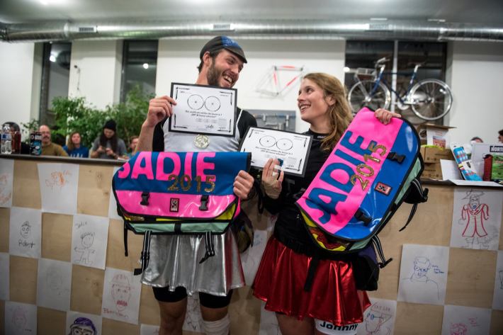 Many of the people currently involved in the Sadie Hawkins ride have previously participated in bike messenger-style “alleycat” races. Those also involve planning a route after being given a list of checkpoints, similar to a day of old-school cycle courier work. However, Schleyer emphasized that while there are similarities, the Sadie Hawkins Style ride is not a competition.