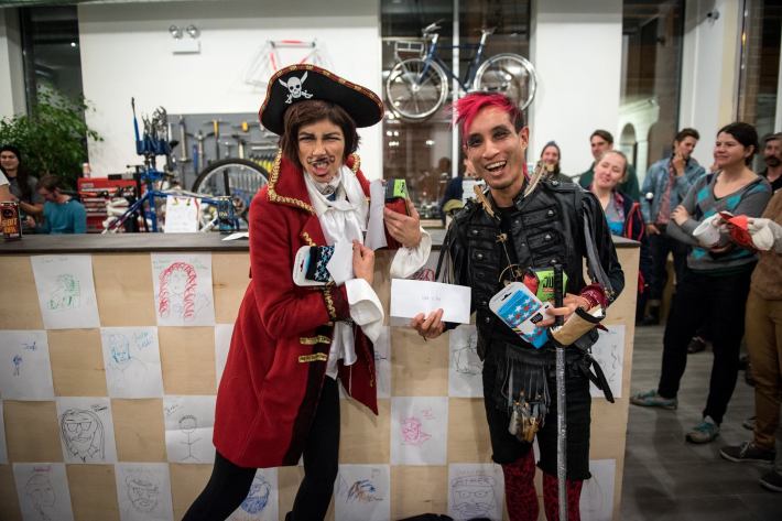 The organizers of the annual Sadie Hawkins Style Ride describe the event as “an all-skill-level, self-guided, scavenger-hunt-style bicycle ride, open to anyone that wants to ride.” They add, “We dress in costumes or high-style gear, and bicycle decorations are encouraged as well. The ride is as long or as short as anyone wants to go, with an excellent afterparty and prizes afterwards.”