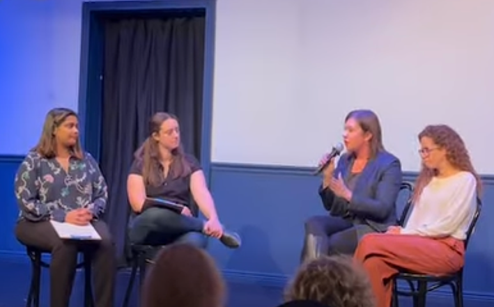 Samantha Evans, a member of the local DSA chapter who's involved with its "Fix the CTA" initiative, kicked off the panel discussion by laying out the current challenges with the public transportation fiduciary canyon. "Our campaign was basically run out of the pandemic times where service was lagging behind," she explained. "And we were all just very frustrated, and we joined together to figure out what were the reasons for the dysfunction. In our first year of the campaign, we met a lot of these people here... and got to know the background of just how bad working conditions can be at CTA. And so in the years since then, we have been rallying for pro-worker initiatives, like making sure that at a basic minimum, workers are comfortable when they're at work, which means having access to bathrooms."
