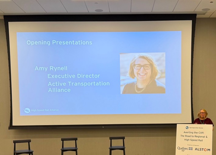 Also appearing that day was another speaker who is passionate about transit, and has worked hard to advocate for it, Active Transportation Alliance Executive Director Amy Rynell.
