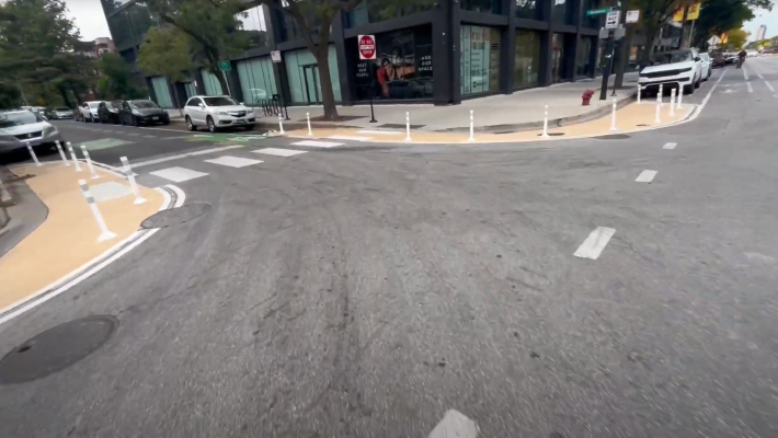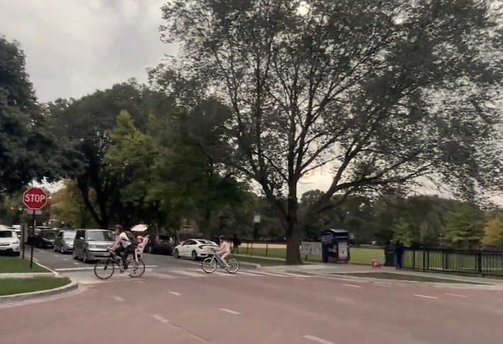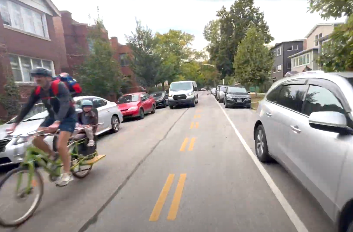 As you can see in the long video below, which I filmed last Friday at 2:45 p.m., as long as you know where the itinerary jogs, it’s a fairly seamless route. CDOT installed bike-friendly “sinusoidal” speed humps, and the posted speed limit was lowered to 20 mph. Families seems to agree it’s a relatively low-stress corridor, since I saw several adults biking with young kids.