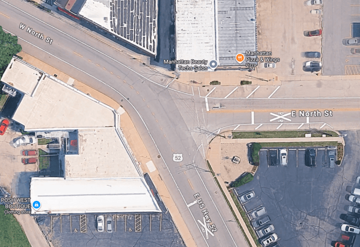 According to the initial police report, on Monday, October 20, shortly before 5:35 p.m., Chance was bicycling near the intersection of East North Street and South State Street. These are two-lane roads, but this intersection, in the downtown business district, is part of the US-52 route between Manhattan and Joliet, which has heavy truck traffic.
